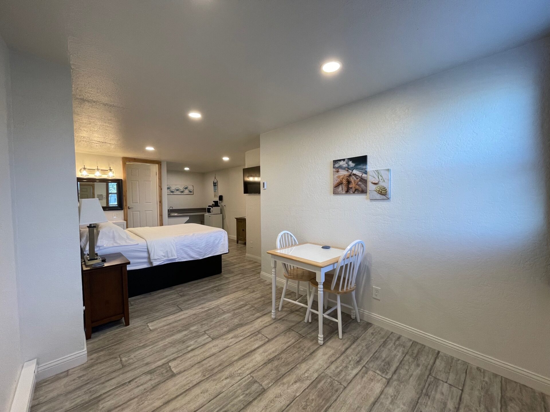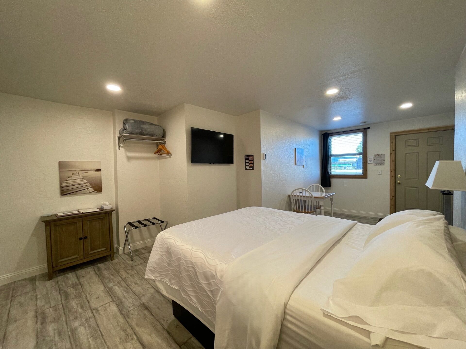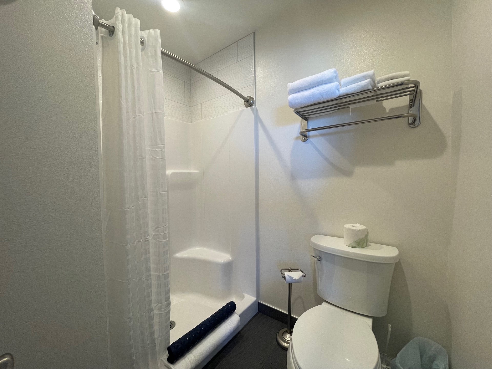 We have rooms with a single Queen-size bed available on both the upper and lower floors. All queen rooms are equipped with showers in the bathroom.